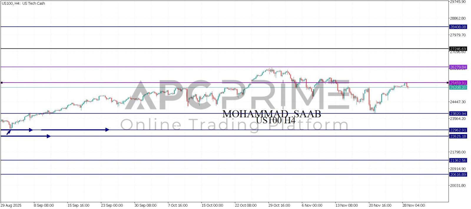 المنطقة الأهم (25459) احتمالية الارتداد منها ممكنة ولكن باختراقها وإغلاق أعلى بشمعة أربع ساعات يتجه السعر إلى منطقة المقاومة (26279) احتمالية الارتداد منها ممكنة ولكن باختراقها وإغلاق أعلى بشمعة أربع ساعات يتجه السعر إلى منطقة المقاومة (27246)