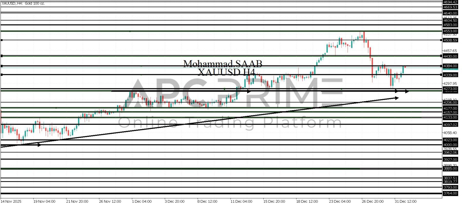 المنطقة الأهم (4384) احتمالية الارتداد منها ممكنة ولكن باختراقها وإغلاق أعلى بشمعة أربع ساعات يتجه السعر إلى منطقة المقاومة (4430) احتمالية الارتداد منها ممكنة ولكن باختراقها وإغلاق أعلى بشمعة أربع ساعات يتجه السعر إلى منطقة المقاومة (4508)