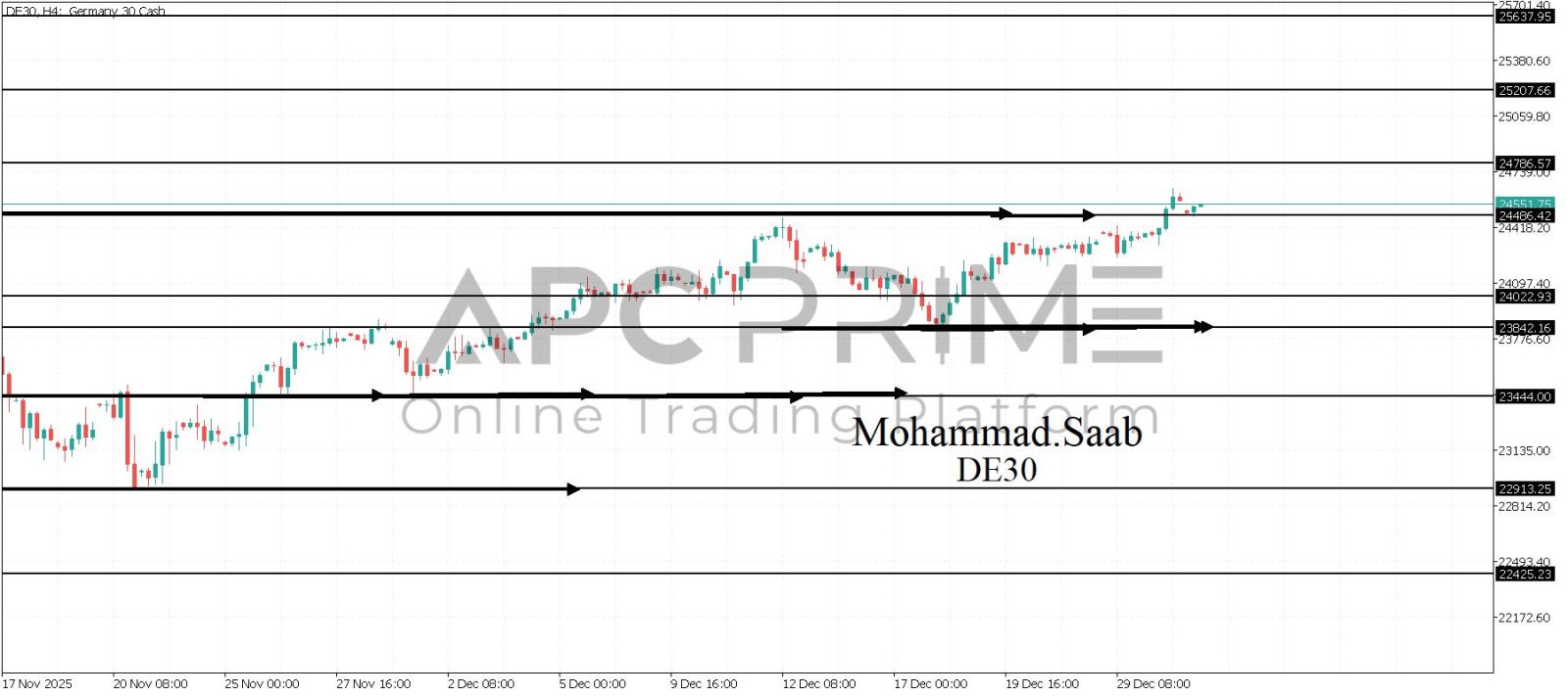 المنطقة الأهم (25216) احتمالية الارتداد منها ممكنة ولكن بكسرها وإغلاق أسفل بشمعة أربع ساعات يتجه السعر إلى منطقة الدعم (24645) احتمالية الارتداد منها ممكنة ولكن بكسرها وإغلاق أسفل بشمعة أربع ساعات يتجه السعر إلى منطقة الدعم (24139)