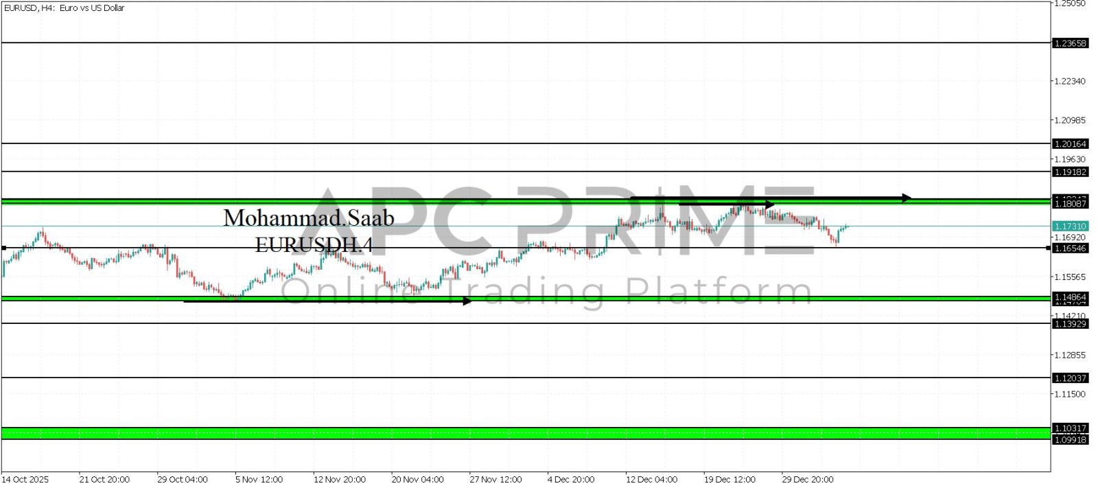 المنطقة الأهم (1.16546) ثبات السعر أعلى المنطقة الأهم يتجه السعر إلى منطقة المقاومة (1.18087-1.18347) احتمالية الارتداد منها ممكنة ولكن باختراقها وإغلاق أعلى بشمعة أربع ساعات يتجه السعر إلى منطقة المقاومة (1.19182)