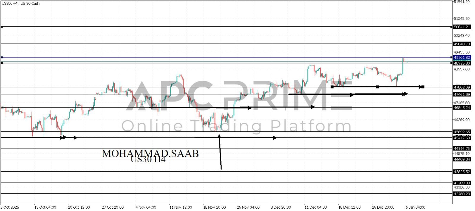 المنطقة الأهم (48925) ثبات السعر أعلى المنطقة الأهم يتجه السعر إلى منطقة المقاومة (49201) احتمالية الارتداد منها ممكنة ولكن باختراقها وإغلاق أعلى بشمعة أربع ساعات يتجه السعر إلى منطقة المقاومة (49840)