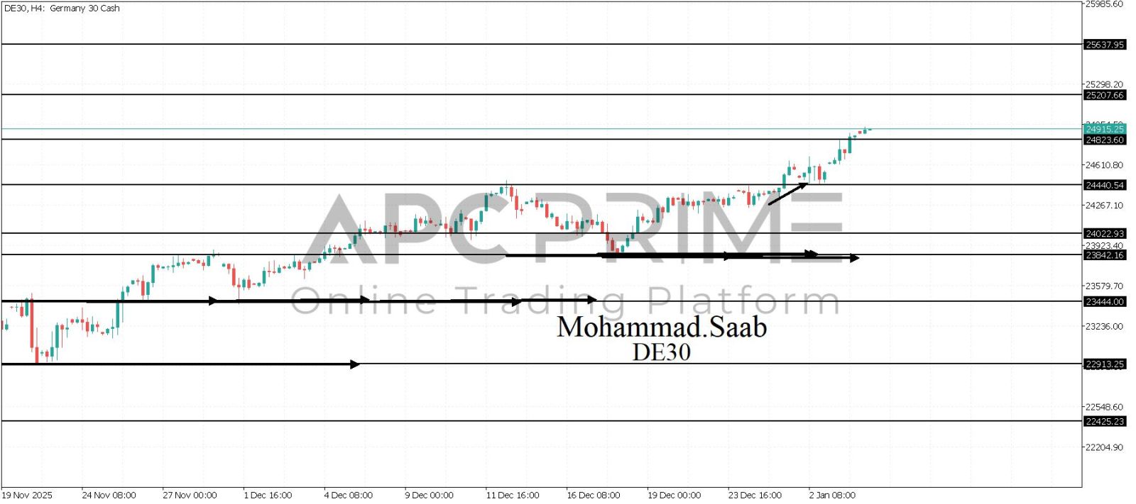 المنطقة الأهم (24823) ثبات السعر أعلى المنطقة الأهم يتجه السعر إلى منطقة المقاومة (25207) احتمالية الارتداد منها ممكنة ولكن باختراقها وإغلاق أعلى بشمعة أربع ساعات يتجه السعر إلى منطقة المقاومة (25637)