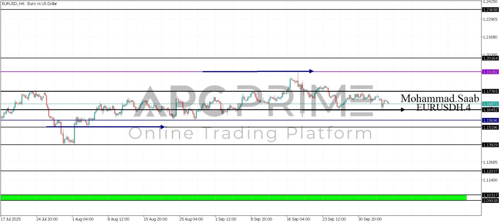 المنطقة الأهم (1.17765) ثبات السعر أسفل المنطقة الأهم يتجه السعر إلى منطقة الدعم (1.16452) احتمالية الارتداد منها ممكنة ولكن بكسرها وإغلاق أسفل بشمعة أربع ساعات يتجه السعر إلى منطقة الدعم (1.15696)