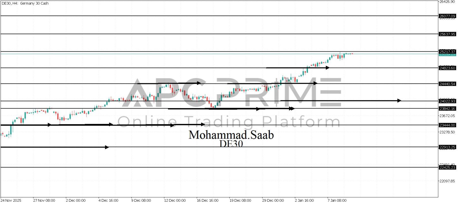 المنطقة الأهم (24823) ثبات السعر أعلى المنطقة الأهم يتجه السعر إلى منطقة المقاومة (25217) احتمالية الارتداد منها ممكنة ولكن باختراقها وإغلاق أعلى بشمعة أربع ساعات يتجه السعر إلى منطقة المقاومة (25637)