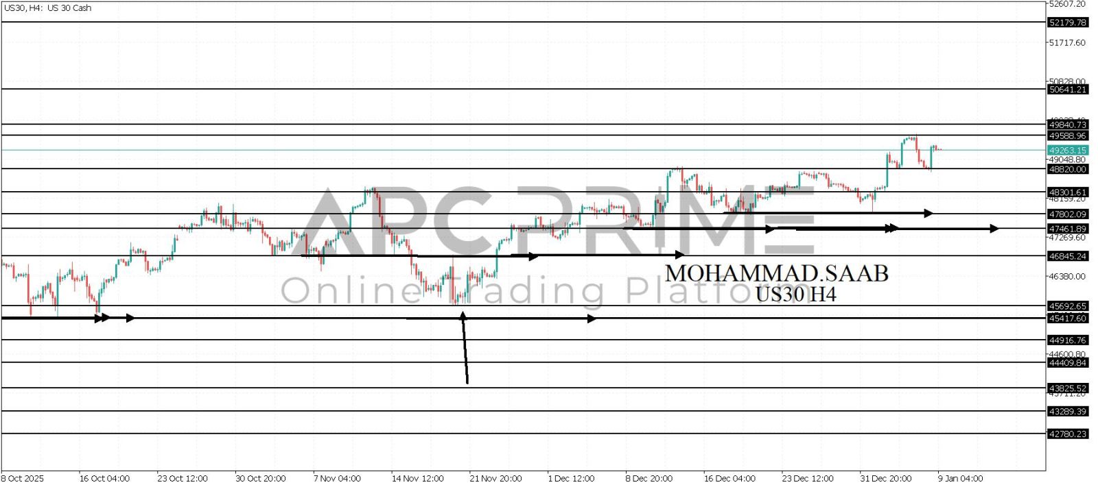 المنطقة الأهم (48820) احتمالية الارتداد منها ممكنة ولكن بكسرها وإغلاق أسفل بشمعة أربع ساعات يتجه السعر إلى منطقة الدعم (48301) احتمالية الارتداد منها ممكنة ولكن بكسرها وإغلاق أسفل بشمعة أربع ساعات يتجه السعر إلى منطقة الدعم (47802)
