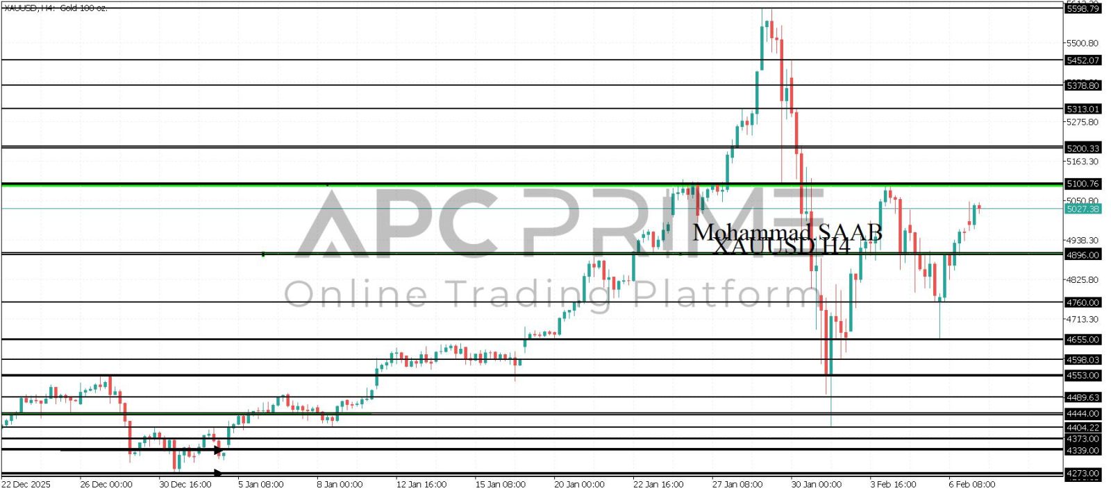 المنطقة الأهم (4896) ثبات السعر أعلى المنطقة الأهم يتجه السعر إلى منطقة المقاومة (5100) احتمالية الارتداد منها ممكنة ولكن باختراقها وإغلاق أعلى بشمعة أربع ساعات يتجه السعر إلى منطقة المقاومة (5200)