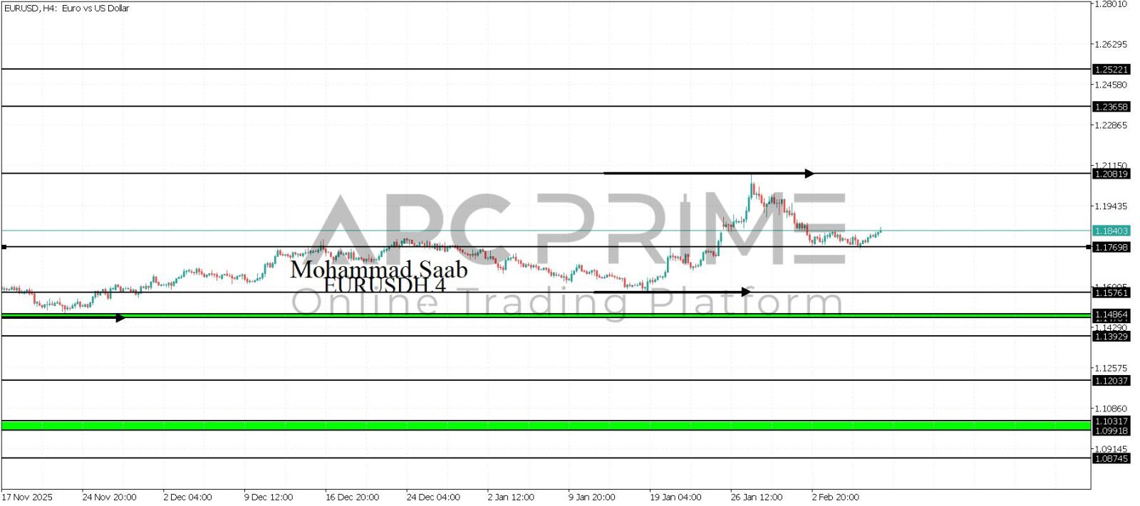 المنطقة الأهم (1.17698) ثبات السعر أعلى المنطقة الأهم يتجه السعر إلى منطقة المقاومة (1.20819) احتمالية الارتداد منها ممكنة ولكن باختراقها وإغلاق أعلى بشمعة أربع ساعات يتجه السعر إلى منطقة المقاومة (1.23658)
