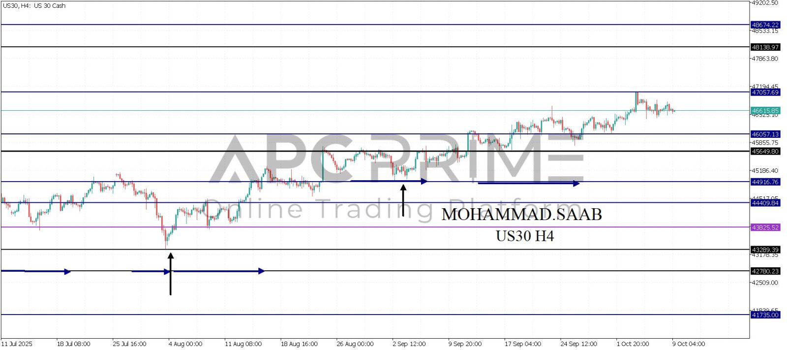 المنطقة الأهم (46057) احتمالية الارتداد منها ممكنة ولكن بكسرها وإغلاق أسفل بشمعة أربع ساعات يتجه السعر إلى منطقة الدعم (45649) احتمالية الارتداد منها ممكنة ولكن بكسرها وإغلاق أسفل بشمعة أربع ساعات يتجه السعر إلى منطقة الدعم (44916)