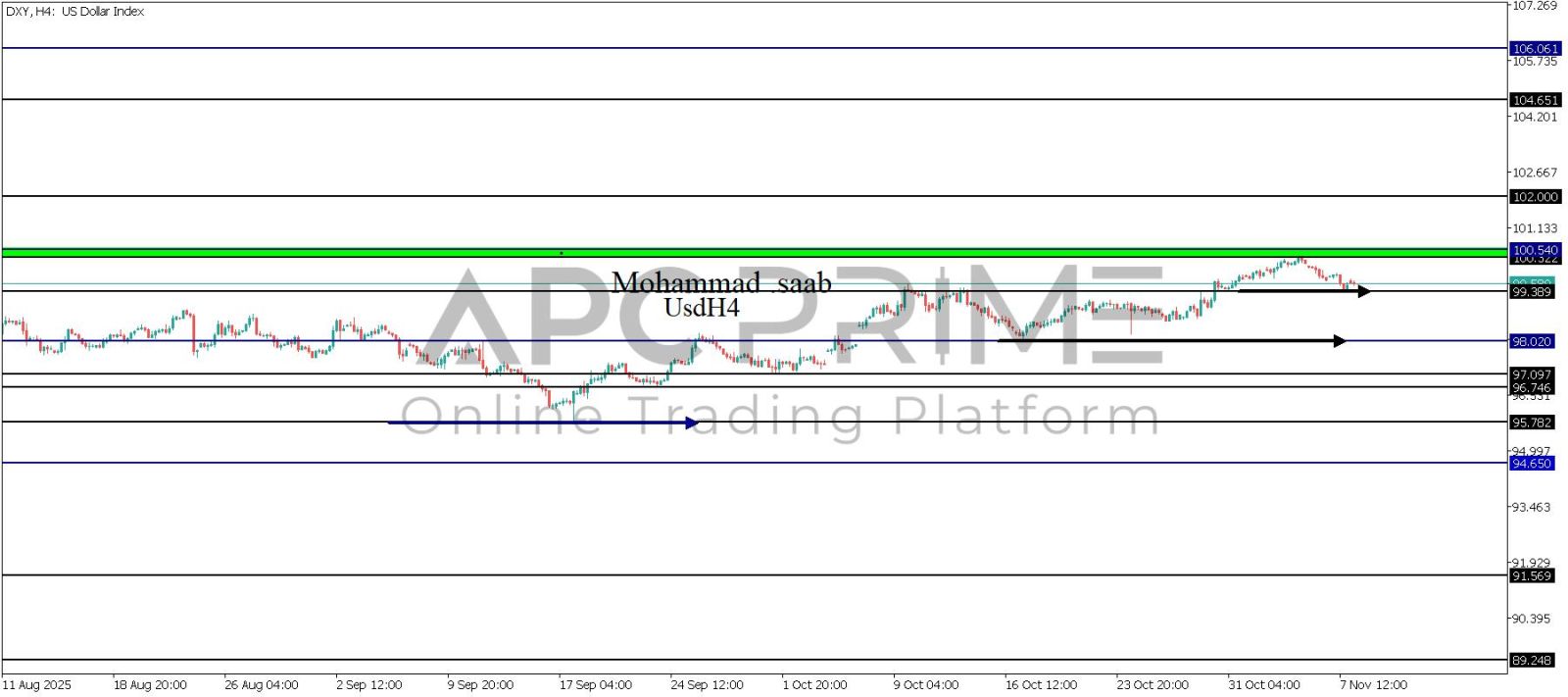نقاط المقاومة:100.540-102.000