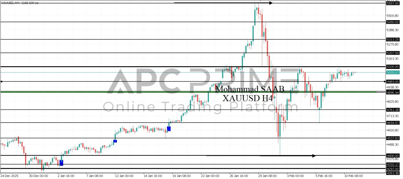 المنطقة الأهم (4983) ثبات السعر أعلى المنطقة الأهم يتجه السعر إلى منطقة المقاومة (5100) احتمالية الارتداد منها ممكنة ولكن باختراقها وإغلاق أعلى بشمعة أربع ساعات يتجه السعر إلى منطقة المقاومة (5207)
