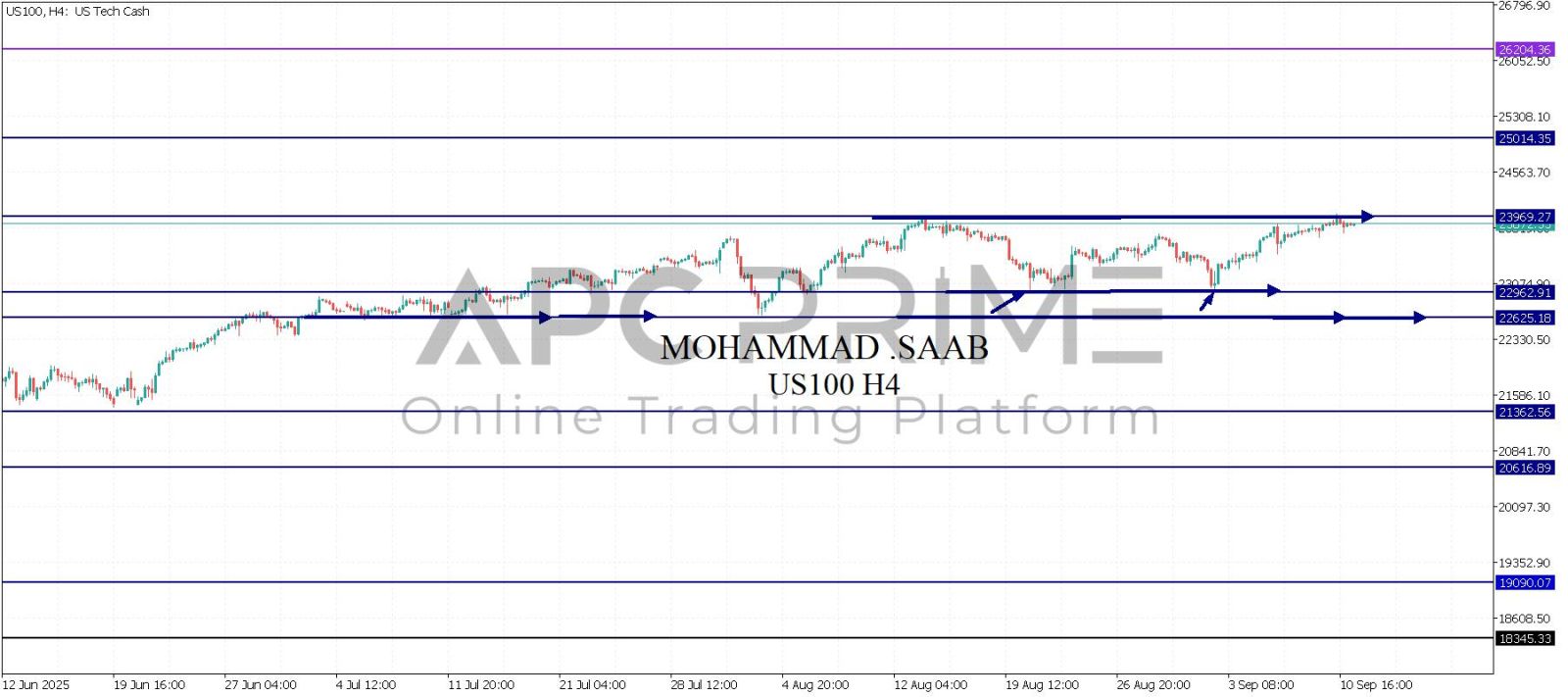 المنطقة الأهم (23969) احتمالية الارتداد منها ممكنة ولكن باختراقها وإغلاق أعلى بشمعة أربع ساعات يتجه السعر إلى منطقة المقاومة (25014) احتمالية الارتداد منها ممكنة ولكن باختراقها وإغلاق أعلى بشمعة أربع ساعات يتجه السعر إلى منطقة المقاومة (26204)