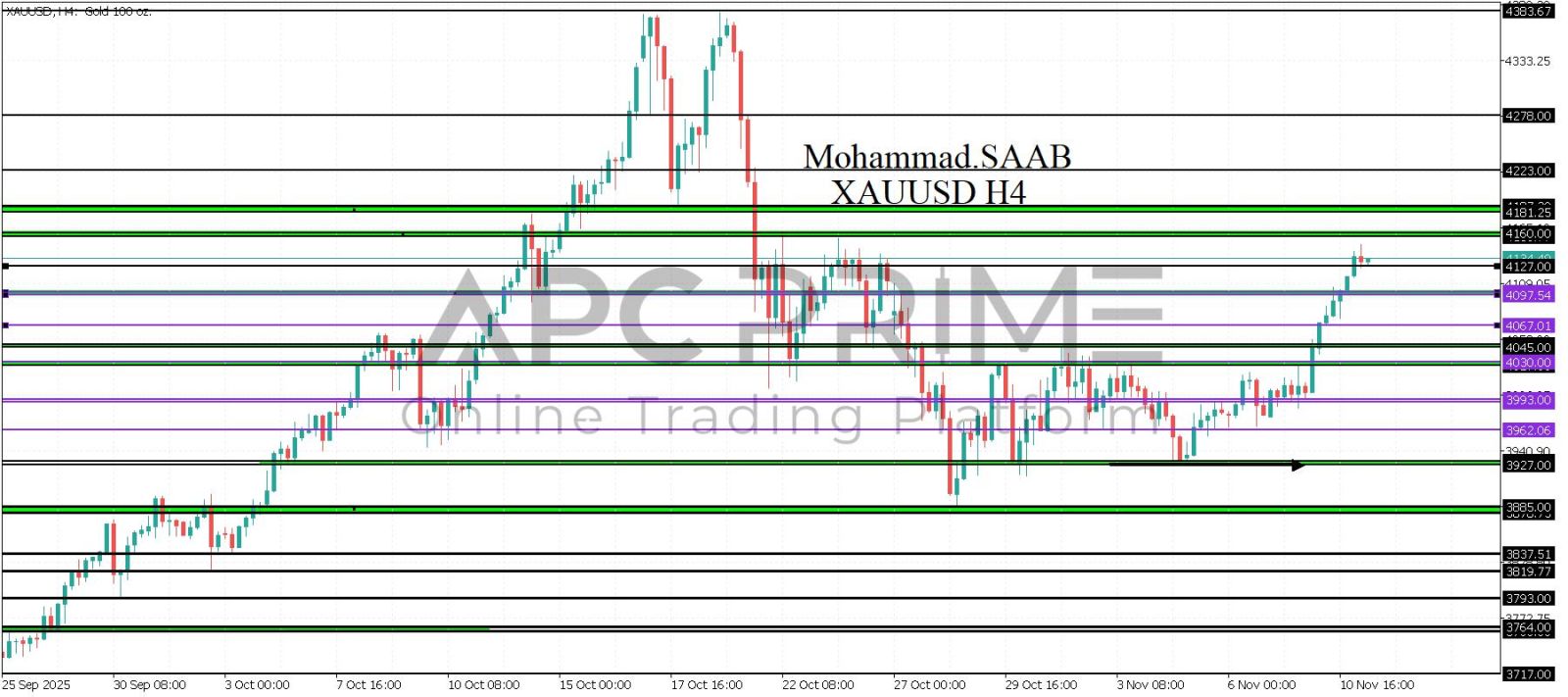 المنطقة الأهم (4127) احتمالية الارتداد منها ممكنة ولكن بكسرها وإغلاق أسفل بشمعة أربع ساعات يتجه السعر إلى منطقة الدعم (4097-4085) احتمالية الارتداد منها ممكنة ولكن بكسرها وإغلاق أسفل بشمعة أربع ساعات يتجه السعر إلى منطقة الدعم (4067)