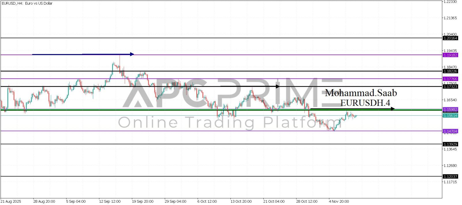 المنطقة الأهم (1.15982-1.15900) احتمالية الارتداد منها ممكنة ولكن باختراقها وإغلاق أعلى بشمعة أربع ساعات يتجه السعر إلى منطقة المقاومة (1.17323) احتمالية الارتداد منها ممكنة ولكن باختراقها وإغلاق أعلى بشمعة أربع ساعات يتجه السعر إلى منطقة المقاومة (1.17766)