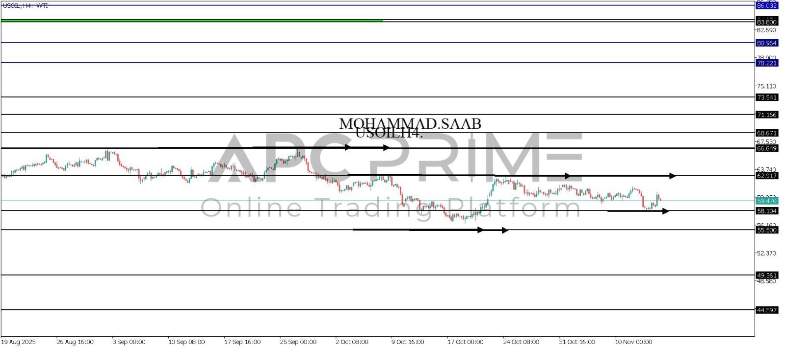 المنطقة الأهم (58.104) احتمالية الارتداد منها ممكنة ولكن بكسرها وإغلاق أسفل بشمعة أربع ساعات يتجه السعر إلى منطقة الدعم (55.500) احتمالية الارتداد منها ممكنة ولكن بكسرها وإغلاق أسفل بشمعة أربع ساعات يتجه السعر إلى منطقة الدعم (49.361)