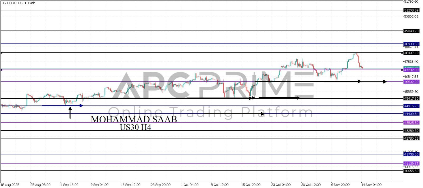المنطقة الأهم (47282) احتمالية الارتداد منها ممكنة ولكن بكسرها وإغلاق أسفل بشمعة أربع ساعات يتجه السعر إلى منطقة الدعم (46502) احتمالية الارتداد منها ممكنة ولكن بكسرها وإغلاق أسفل بشمعة أربع ساعات يتجه السعر إلى منطقة الدعم (45417)