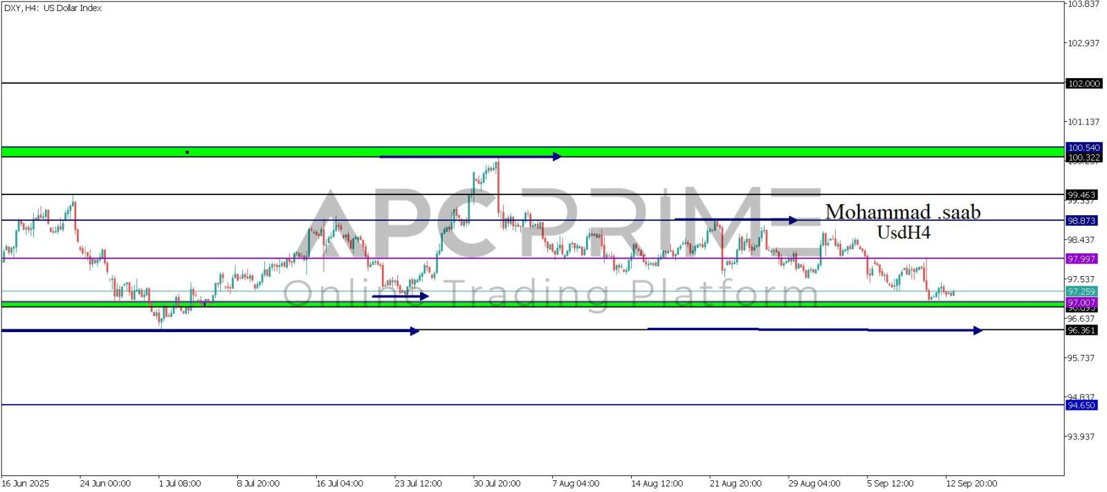 المنطقة الأهم (97.007-96.895) ثبات السعر أعلى المنطقة الأهم يتجه السعر إلى منطقة المقاومة (97.997) احتمالية الارتداد منها ممكنة ولكن باختراقها وإغلاق أعلى بشمعة أربع ساعات يتجه السعر إلى منطقة المقاومة (98.873)