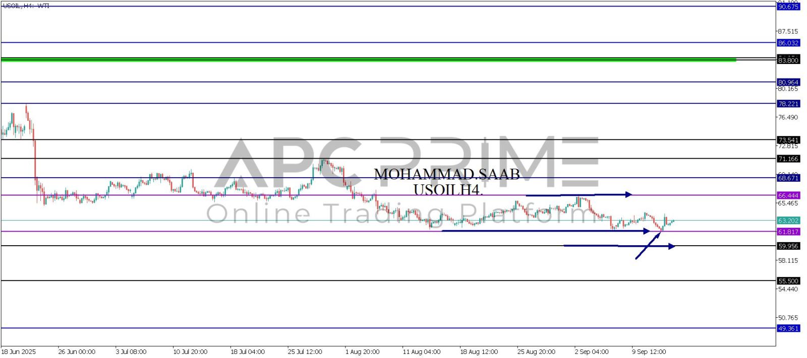المنطقة الأهم (61.817) احتمالية الارتداد منها ممكنة ولكن بكسرها وإغلاق أسفل بشمعة أربع ساعات يتجه السعر إلى منطقة الدعم (59.956) احتمالية الارتداد منها ممكنة ولكن بكسرها وإغلاق أسفل بشمعة أربع ساعات يتجه السعر إلى منطقة الدعم (55.500)