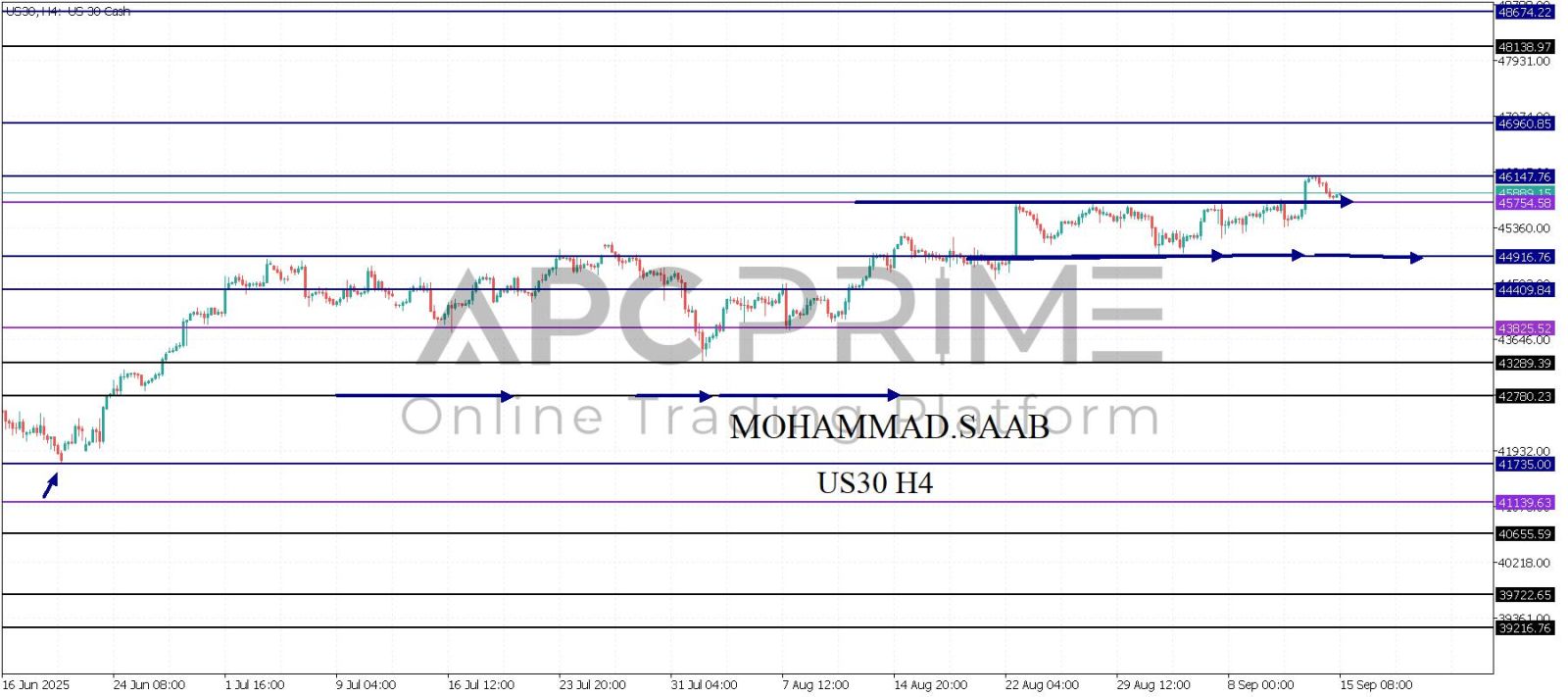 المنطقة الأهم (45754) احتمالية الارتداد منها ممكنة ولكن بكسرها وإغلاق أسفل بشمعة أربع ساعات يتجه السعر إلى منطقة الدعم (44916) احتمالية الارتداد منها ممكنة ولكن بكسرها وإغلاق أسفل بشمعة أربع ساعات يتجه السعر إلى منطقة الدعم (44409)
