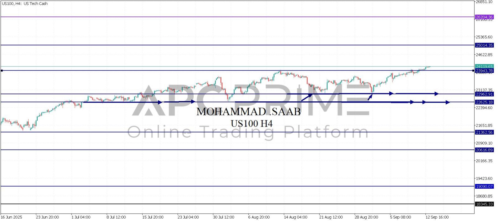 المنطقة الأهم (23943) ثبات السعر أعلى المنطقة الأهم يتجه السعر إلى منطقة المقاومة (25014) احتمالية الارتداد منها ممكنة ولكن باختراقها وإغلاق أعلى بشمعة أربع ساعات يتجه السعر إلى منطقة المقاومة (26204)