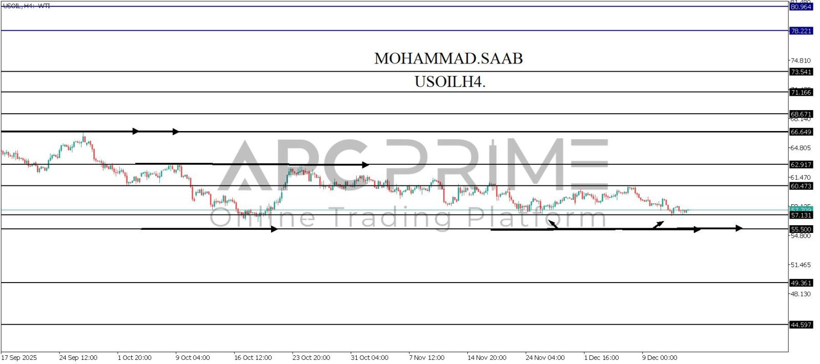 المنطقة الأهم (57.131) احتمالية الارتداد منها ممكنة ولكن بكسرها وإغلاق أسفل بشمعة أربع ساعات يتجه السعر إلى منطقة الدعم (55.500) احتمالية الارتداد منها ممكنة ولكن بكسرها وإغلاق أسفل بشمعة أربع ساعات يتجه السعر إلى منطقة الدعم (49.361)