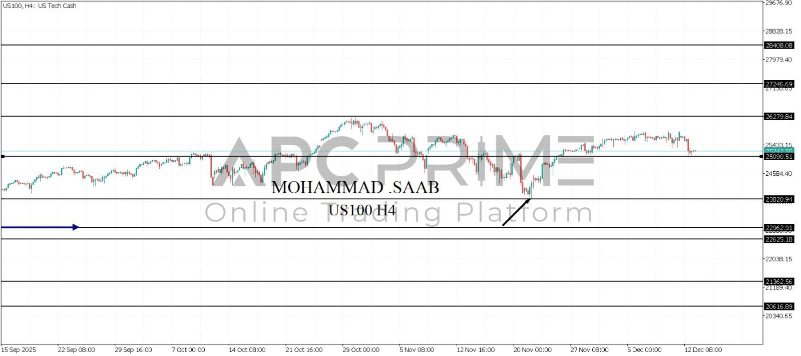المنطقة الأهم (25090) احتمالية الارتداد منها ممكنة ولكن بكسرها وإغلاق أسفل بشمعة أربع ساعات يتجه السعر إلى منطقة الدعم (23820) احتمالية الارتداد منها ممكنة ولكن بكسرها وإغلاق أسفل بشمعة أربع ساعات يتجه السعر إلى منطقة الدعم (22962)