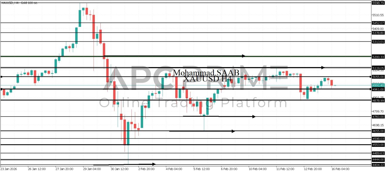 المنطقة الأهم (4961) ثبات السعر أعلى المنطقة الأهم يتجه السعر إلى منطقة المقاومة (5055) احتمالية الارتداد منها ممكنة ولكن باختراقها وإغلاق أعلى بشمعة أربع ساعات يتجه السعر إلى منطقة المقاومة (5119)