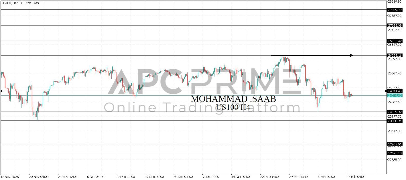المنطقة الأهم (24911) احتمالية الارتداد منها ممكنة ولكن باختراقها وإغلاق أعلى بشمعة أربع ساعات يتجه السعر إلى منطقة المقاومة (26225) احتمالية الارتداد منها ممكنة ولكن باختراقها وإغلاق أعلى بشمعة أربع ساعات يتجه السعر إلى منطقة المقاومة (26763)