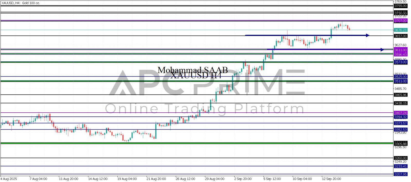 المنطقة الأهم (3703) ثبات السعر أسفل المنطقة الأهم يتجه السعر إلى منطقة الدعم (3657) احتمالية الارتداد منها ممكنة ولكن بكسرها وإغلاق أسفل بشمعة أربع ساعات يتجه السعر إلى منطقة الدعم (3611-3614)