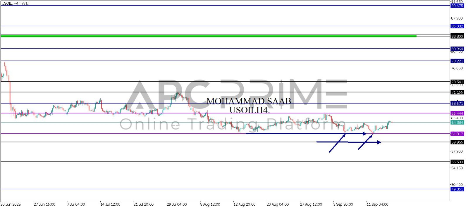 المنطقة الأهم (61.817) احتمالية الارتداد منها ممكنة ولكن بكسرها وإغلاق أسفل بشمعة أربع ساعات يتجه السعر إلى منطقة الدعم (59.956) احتمالية الارتداد منها ممكنة ولكن بكسرها وإغلاق أسفل بشمعة أربع ساعات يتجه السعر إلى منطقة الدعم (55.500)