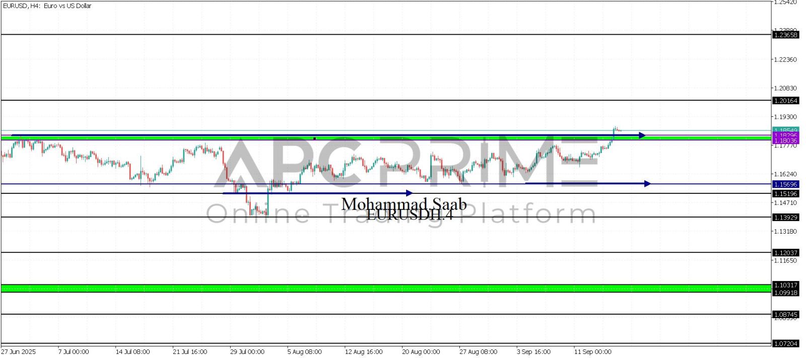 المنطقة الأهم (1.18036-1.18296) احتمالية الارتداد منها ممكنة ولكن بكسرها وإغلاق أسفل بشمعة أربع ساعات يتجه السعر إلى منطقة الدعم (1.15696) احتمالية الارتداد منها ممكنة ولكن بكسرها وإغلاق أسفل بشمعة أربع ساعات يتجه السعر إلى منطقة الدعم (1.13929)