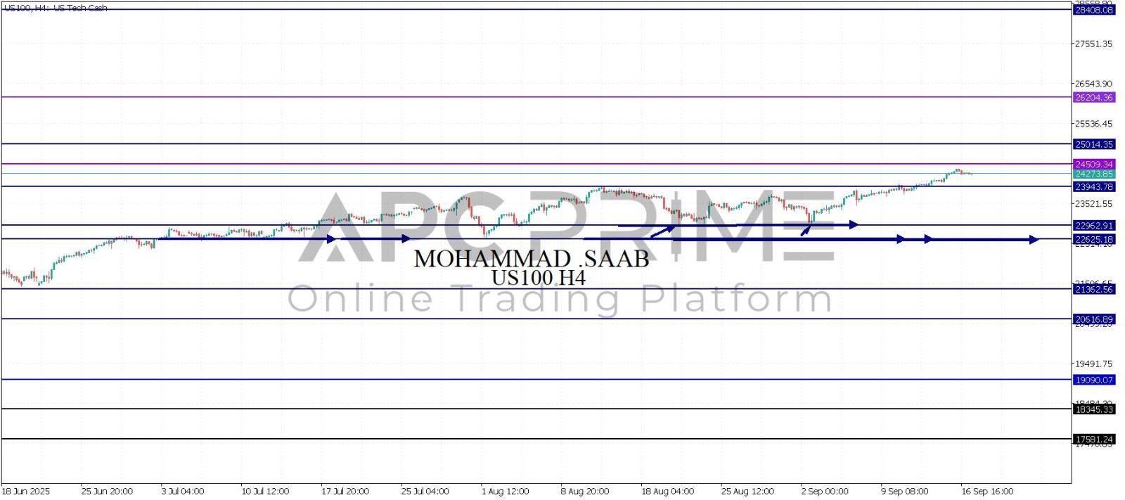المنطقة الأهم (23943) ثبات السعر أعلى المنطقة الأهم يتجه السعر إلى منطقة المقاومة (24509) احتمالية الارتداد منها ممكنة ولكن باختراقها وإغلاق أعلى بشمعة أربع ساعات يتجه السعر إلى منطقة المقاومة (25014)