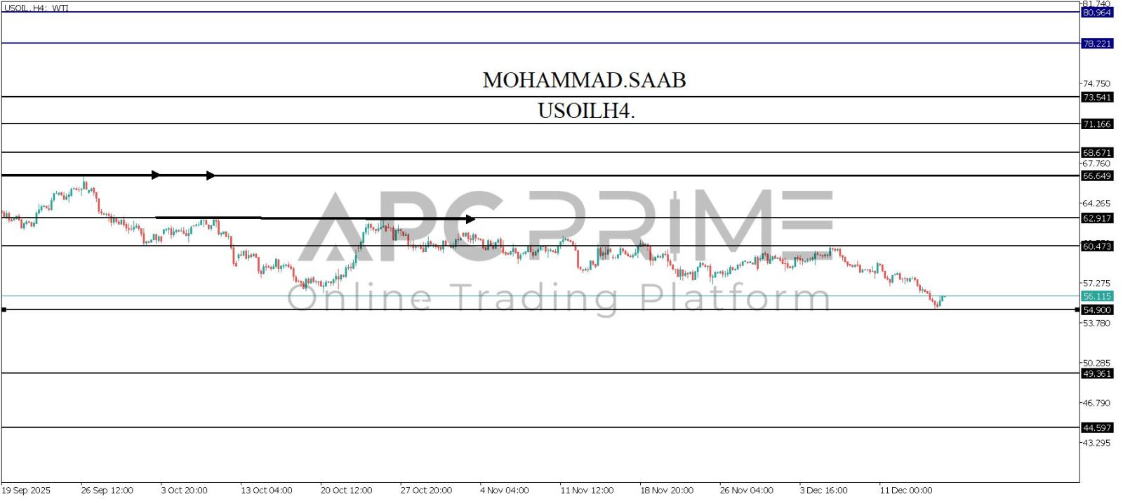 المنطقة الأهم (54.900) ثبات السعر أعلى المنطقة الأهم يتجه السعر إلى منطقة المقاومة (60.473) احتمالية الارتداد منها ممكنة ولكن باختراقها وإغلاق أعلى بشمعة أربع ساعات يتجه السعر إلى منطقة المقاومة (62.917)