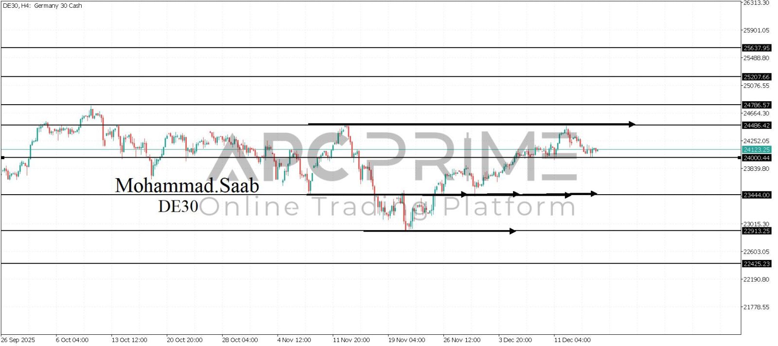 المنطقة الأهم (24000) ثبات السعر أعلى المنطقة الأهم يتجه السعر إلى منطقة المقاومة (24486) احتمالية الارتداد منها ممكنة ولكن باختراقها وإغلاق أعلى بشمعة أربع ساعات يتجه السعر إلى منطقة المقاومة (24786)