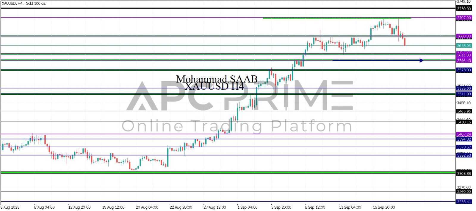 المنطقة الأهم (3660-3657) احتمالية الارتداد منها ممكنة ولكن باختراقها وإغلاق أعلى بشمعة أربع ساعات يتجه السعر إلى منطقة المقاومة (3707-3703) احتمالية الارتداد منها ممكنة ولكن باختراقها وإغلاق أعلى بشمعة أربع ساعات يتجه السعر إلى منطقة المقاومة (3730)