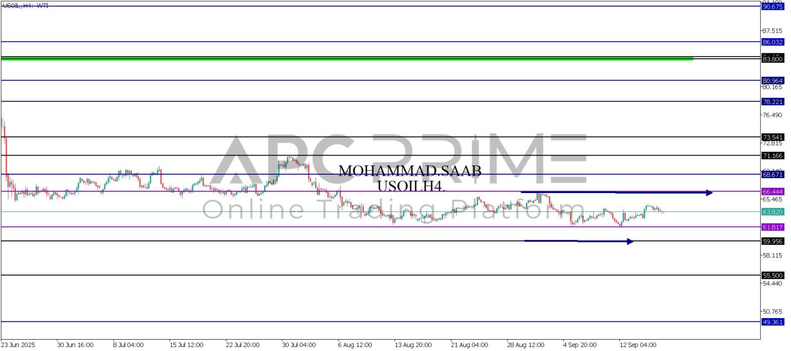المنطقة الأهم (61.817) ثبات السعر أعلى المنطقة الأهم يتجه السعر إلى منطقة المقاومة (66.444) احتمالية الارتداد منها ممكنة ولكن باختراقها وإغلاق أعلى بشمعة أربع ساعات يتجه السعر إلى منطقة المقاومة (68.671)
