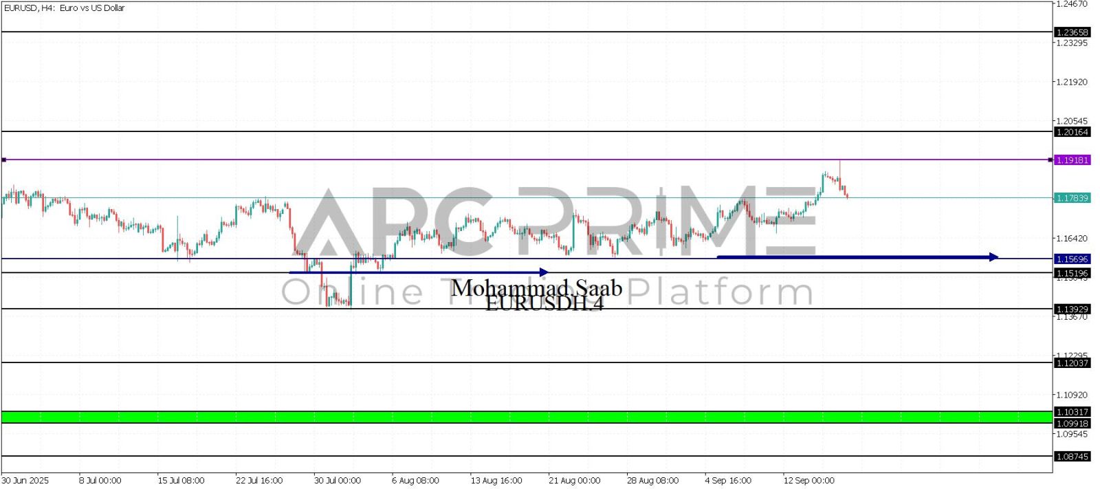 المنطقة الأهم (1.19181) ثبات السعر أسفل المنطقة الأهم يتجه السعر إلى منطقة الدعم (1.15696) احتمالية الارتداد منها ممكنة ولكن بكسرها وإغلاق أسفل بشمعة أربع ساعات يتجه السعر إلى منطقة الدعم (1.13929)