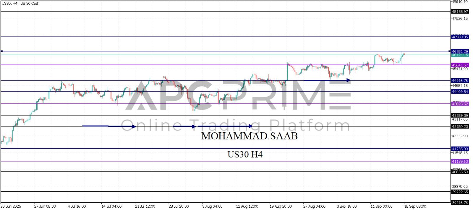 المنطقة الأهم (46281) احتمالية الارتداد منها ممكنة ولكن باختراقها وإغلاق أعلى بشمعة أربع ساعات يتجه السعر إلى منطقة المقاومة (46960) احتمالية الارتداد منها ممكنة ولكن باختراقها وإغلاق أعلى بشمعة أربع ساعات يتجه السعر إلى منطقة المقاومة (48138)