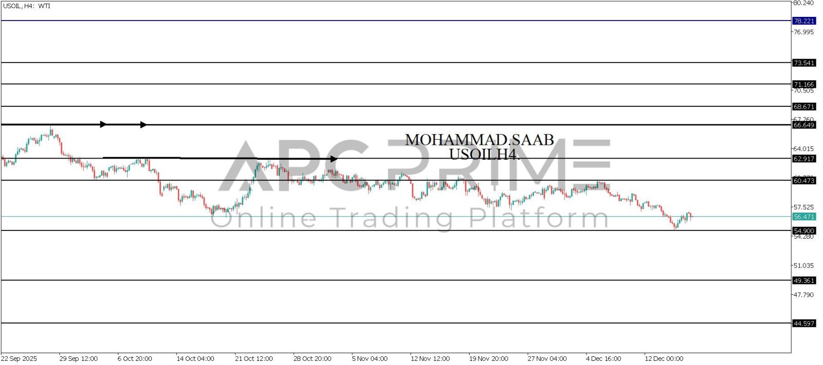 المنطقة الأهم (54.900) ثبات السعر أعلى المنطقة الأهم يتجه السعر إلى منطقة المقاومة (60.473) احتمالية الارتداد منها ممكنة ولكن باختراقها وإغلاق أعلى بشمعة أربع ساعات يتجه السعر إلى منطقة المقاومة (62.917)