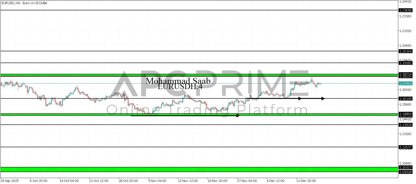 المنطقة الأهم (1.18213-1.18039) ثبات السعر أسفل المنطقة الأهم يتجه السعر إلى منطقة الدعم (1.16149) احتمالية الارتداد منها ممكنة ولكن بكسرها وإغلاق أسفل بشمعة أربع ساعات يتجه السعر إلى منطقة الدعم (1.14864-1.14704)