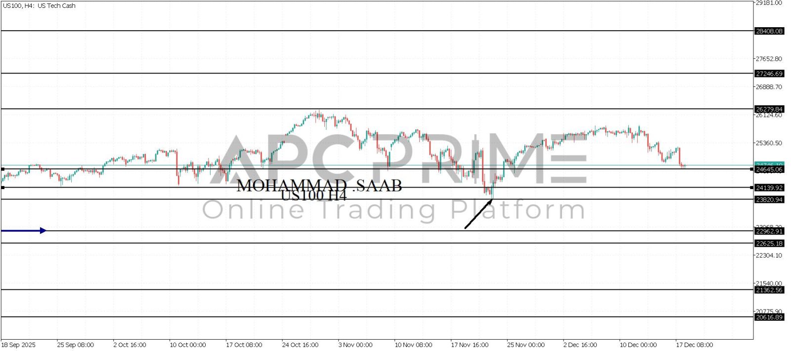 المنطقة الأهم (24645) ثبات السعر أعلى المنطقة الأهم يتجه السعر إلى منطقة المقاومة (26279) احتمالية الارتداد منها ممكنة ولكن باختراقها وإغلاق أعلى بشمعة أربع ساعات يتجه السعر إلى منطقة المقاومة (27246)