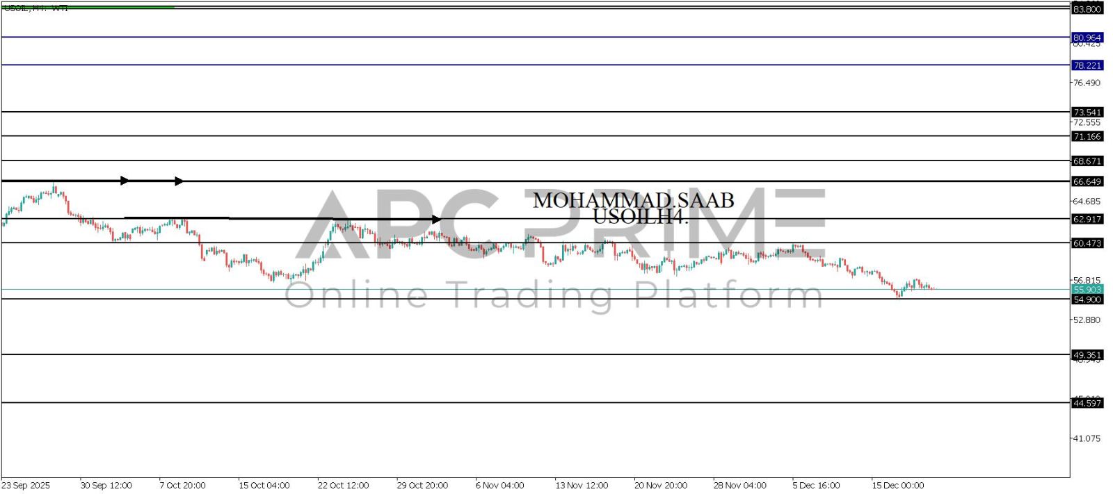 المنطقة الأهم (54.900) ثبات السعر أعلى المنطقة الأهم يتجه السعر إلى منطقة المقاومة (60.473) احتمالية الارتداد منها ممكنة ولكن باختراقها وإغلاق أعلى بشمعة أربع ساعات يتجه السعر إلى منطقة المقاومة (62.917)