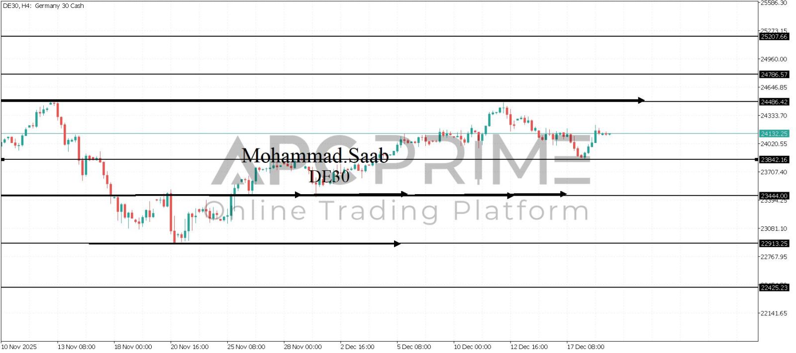 المنطقة الأهم (23842) ثبات السعر أعلى المنطقة الأهم يتجه السعر إلى منطقة المقاومة (24486) احتمالية الارتداد منها ممكنة ولكن باختراقها وإغلاق أعلى بشمعة أربع ساعات يتجه السعر إلى منطقة المقاومة (24786)