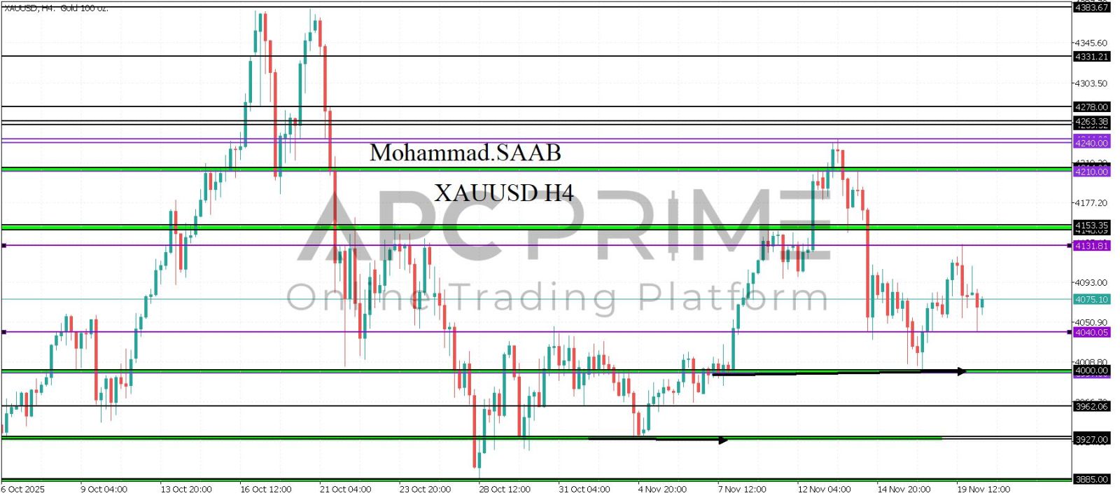 المنطقة الأهم (4131) ثبات السعر أسفل المنطقة الأهم يتجه السعر إلى منطقة الدعم (4040) احتمالية الارتداد منها ممكنة ولكن بكسرها وإغلاق أسفل بشمعة أربع ساعات يتجه السعر إلى منطقة الدعم (3990-4000)