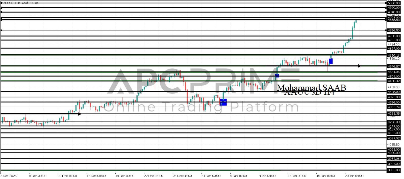 المنطقة الأهم (4816) ثبات السعر أعلى المنطقة الأهم يتجه السعر إلى منطقة المقاومة (4903) احتمالية الارتداد منها ممكنة ولكن باختراقها وإغلاق أعلى بشمعة أربع ساعات يتجه السعر إلى منطقة المقاومة (4940)