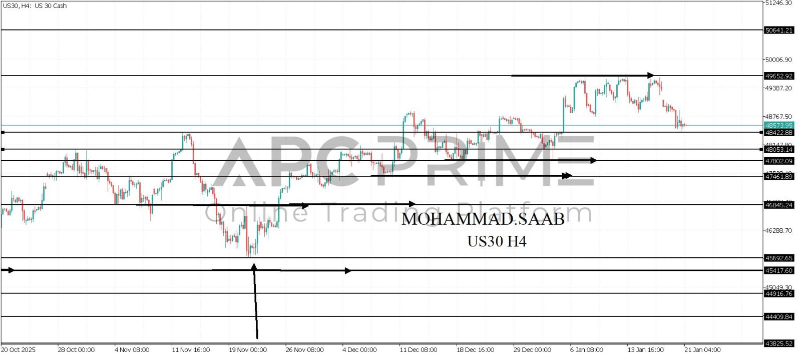 المنطقة الأهم (48422) احتمالية الارتداد منها ممكنة ولكن بكسرها وإغلاق أسفل بشمعة أربع ساعات يتجه السعر إلى منطقة الدعم (48053) احتمالية الارتداد منها ممكنة ولكن بكسرها وإغلاق أسفل بشمعة أربع ساعات يتجه السعر إلى منطقة الدعم (47802)