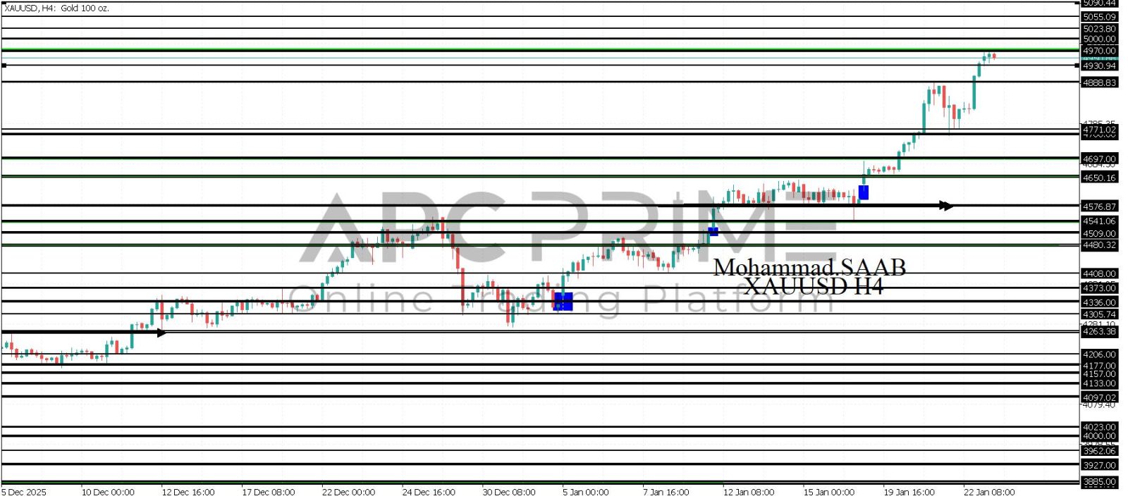 المنطقة الأهم (4970-4967) احتمالية الارتداد منها ممكنة ولكن باختراقها وإغلاق أعلى بشمعة أربع ساعات يتجه السعر إلى منطقة المقاومة (5000) احتمالية الارتداد منها ممكنة ولكن باختراقها وإغلاق أعلى بشمعة أربع ساعات يتجه السعر إلى منطقة المقاومة (5023)