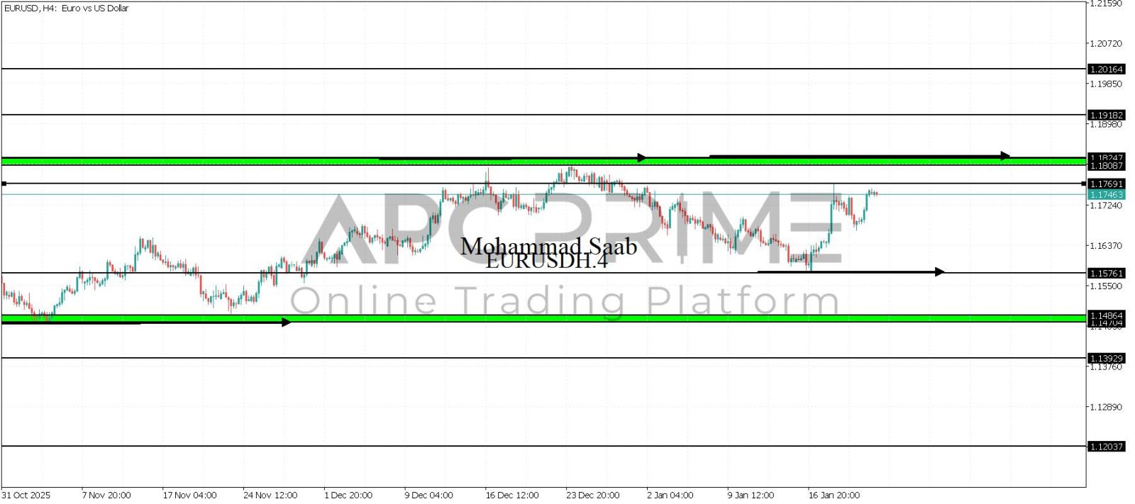 المنطقة الأهم (1.17691) احتمالية الارتداد منها ممكنة ولكن باختراقها وإغلاق أعلى بشمعة أربع ساعات يتجه السعر إلى منطقة المقاومة (1.18087-1.18247) احتمالية الارتداد منها ممكنة ولكن باختراقها وإغلاق أعلى بشمعة أربع ساعات يتجه السعر إلى منطقة المقاومة (1.19182)