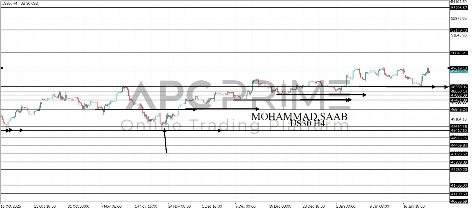 المنطقة الأهم (49619) ثبات السعر أسفل المنطقة الأهم يتجه السعر إلى منطقة الدعم (48358) احتمالية الارتداد منها ممكنة ولكن بكسرها وإغلاق أسفل بشمعة أربع ساعات يتجه السعر إلى منطقة الدعم (48035)