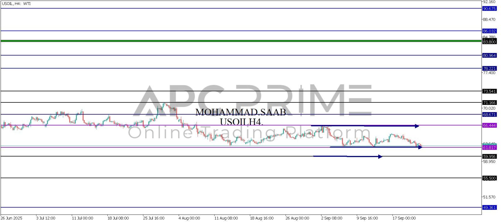 المنطقة الأهم (61.817) احتمالية الارتداد منها ممكنة ولكن بكسرها وإغلاق أسفل بشمعة أربع ساعات يتجه السعر إلى منطقة الدعم (59.956) احتمالية الارتداد منها ممكنة ولكن بكسرها وإغلاق أسفل بشمعة أربع ساعات يتجه السعر إلى منطقة الدعم (55.500)