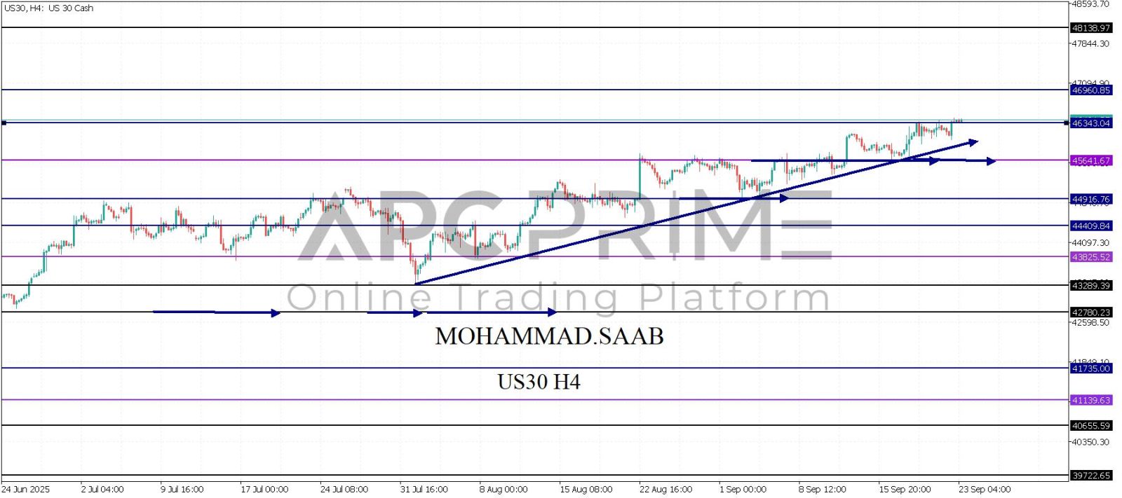 المنطقة الأهم (46343) احتمالية الارتداد منها ممكنة ولكن بكسرها وإغلاق أسفل بشمعة أربع ساعات يتجه السعر إلى منطقة الدعم (45641) احتمالية الارتداد منها ممكنة ولكن بكسرها وإغلاق أسفل بشمعة أربع ساعات يتجه السعر إلى منطقة الدعم (44916)
